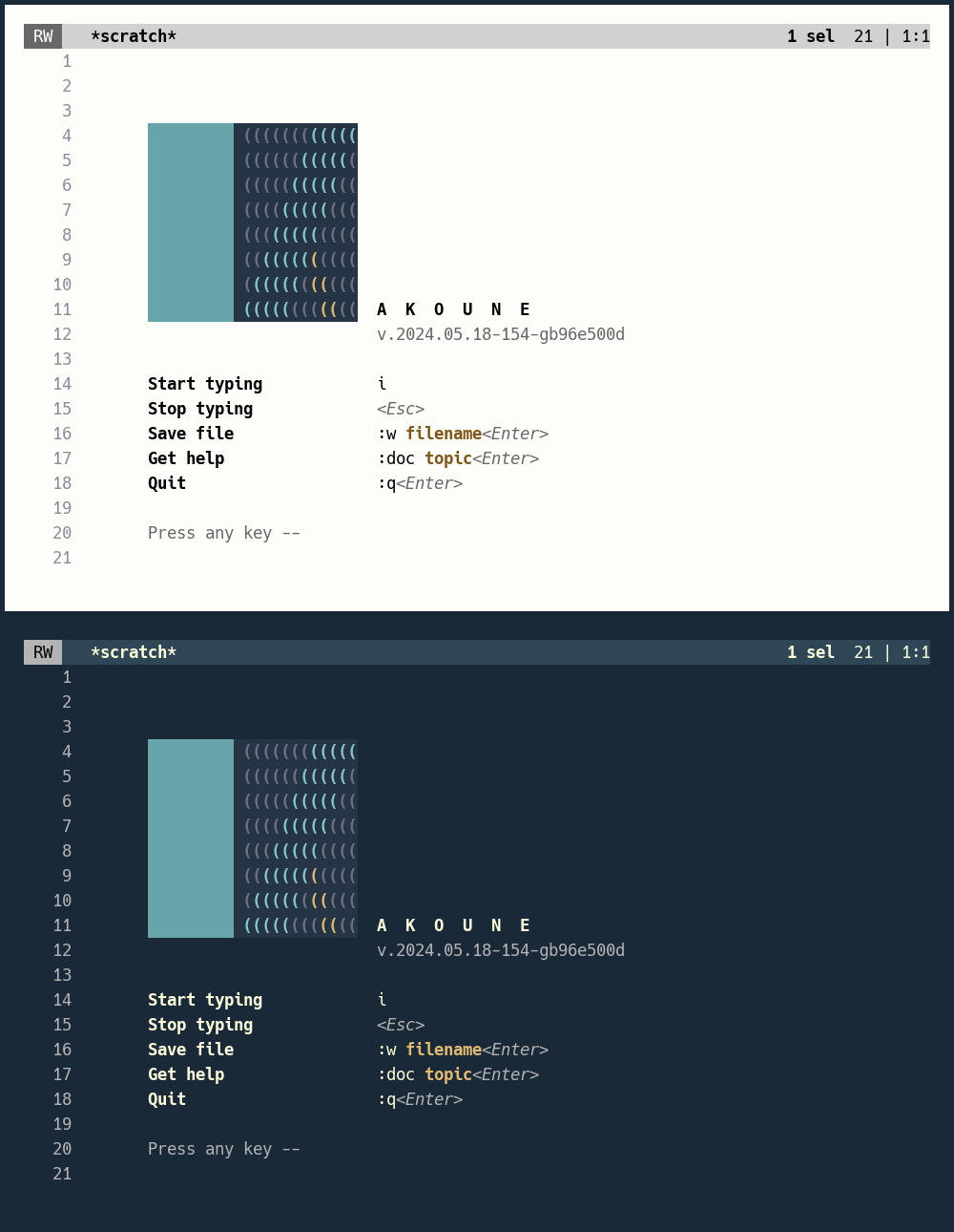 I have written a Kakoune splash screen with a new logo. As explained near the top of the GitHub page for Texture, this new logo solves issues with the splash screen I wrote previously. So if you are into this sort of eye candy, Texture is worth checking out. Link and screenshot(s):